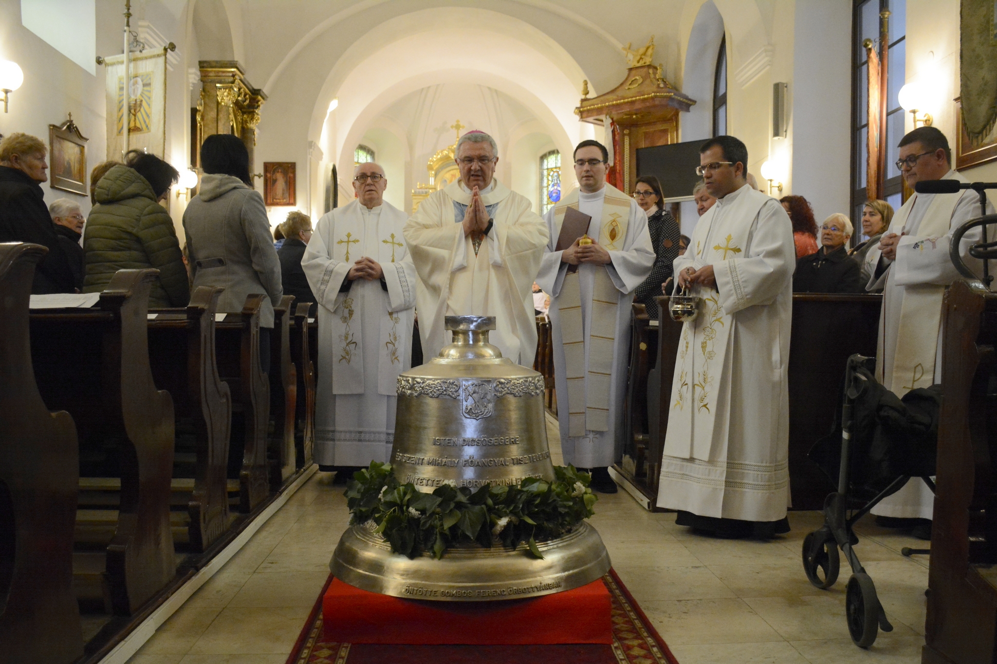 „Isten dicsőségére és szent Mihály főangyal tiszteletére öntettek a horvátkimlei hívek az úr 2024. évében” – ez áll az új, megszentelt harangon magyar és horvát nyelven is.